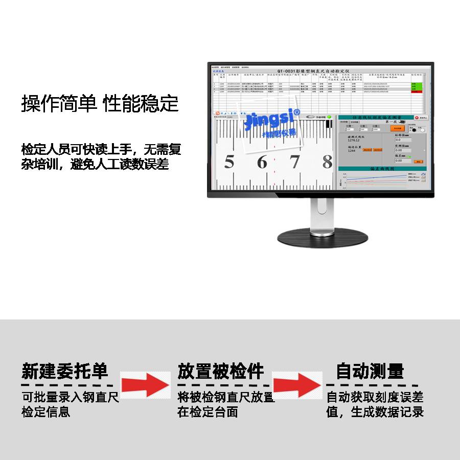 钢直尺全自主的检定仪以我我司自强创新的图相百度算法为的点,以高精度玻璃纸线纹尺为基点,得到