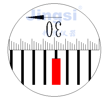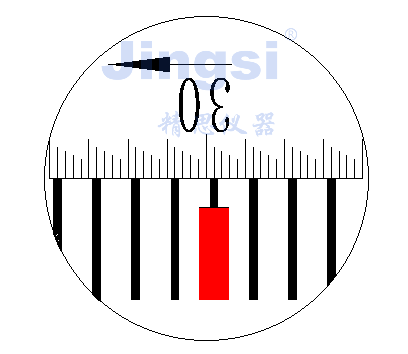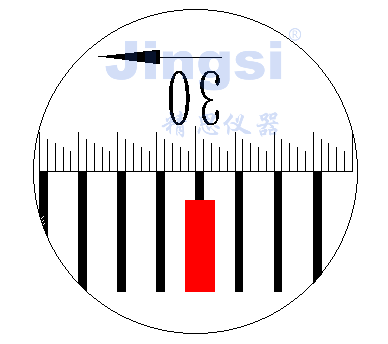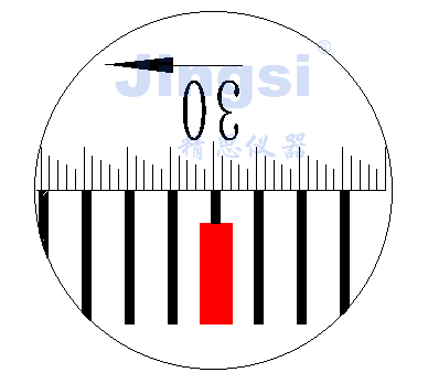 被检尺方针刻线中间若绝对三等规范线纹尺30cm(方针线纹)处靠左,读数同理。